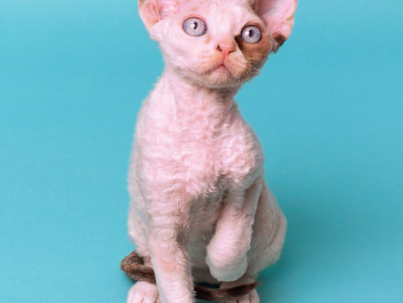 Born Feb. 2, 2021, five beautiful babies to Rex n Roll Cardi B (tortie point) and Devine Devons Charleston Chew (black) . Two males: Freddy Mercury, seal and point & white, and Flava Flav, cream lynx point. Three females: Fleetwood Mac, tortie point & white, Feist, tortie point & white, and Fugeez, blue/cream/white patched calico.
